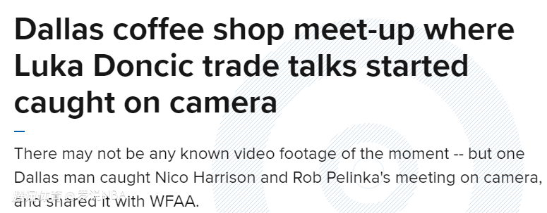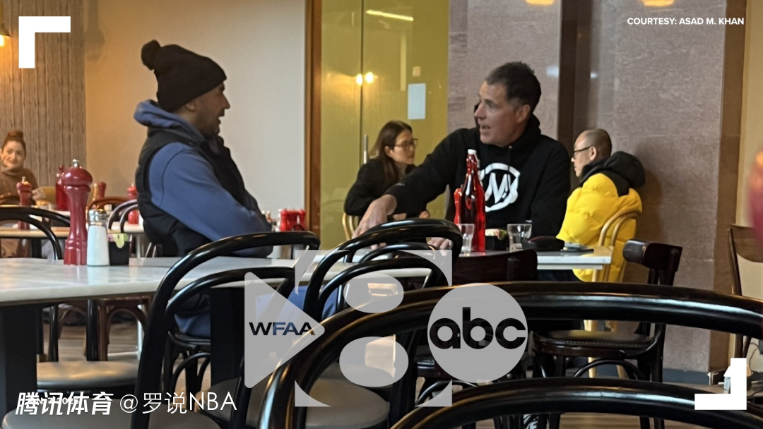 ESPN此前曾报道,在湖人客场对阵独行侠的早上,独行侠总经理尼科-哈里森邀请湖人总经理佩林卡在美航中心附近的咖啡厅坐坐。这张照片就记录了当时两人会面的时刻,而东契奇换浓眉的交易也是从那一刻开始酝酿的。