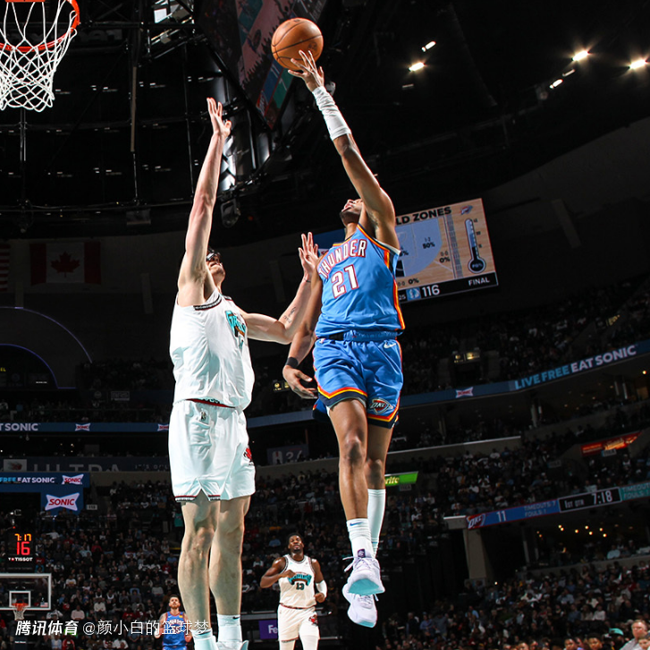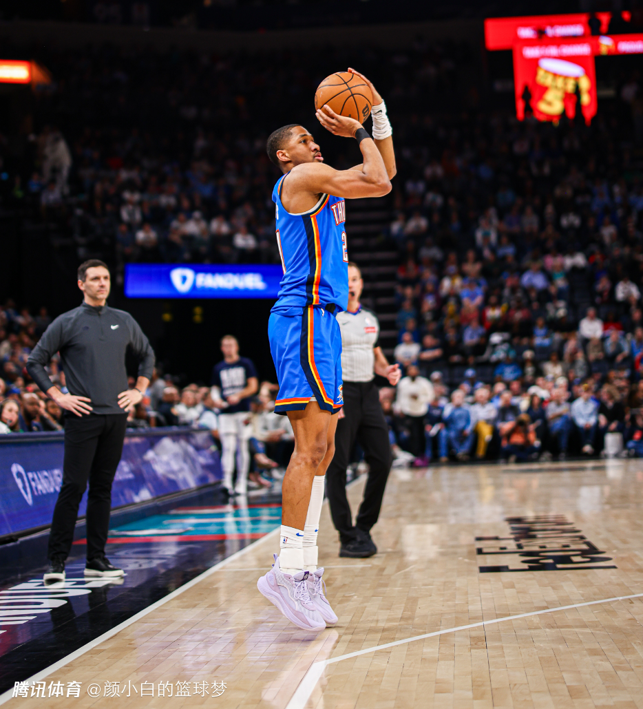 这场比赛是雷霆背靠背的第二场,所以刚刚伤愈复出的霍姆格伦并没有出战,哈腾回到先发阵容,SGA作为MVP候选继续打,首节亚历山大7中2+三分3中2拿到10分1助攻,威金斯首节7中4+三分5中3拿到11分3篮板1助攻,这两人都上双帮助雷霆领先。