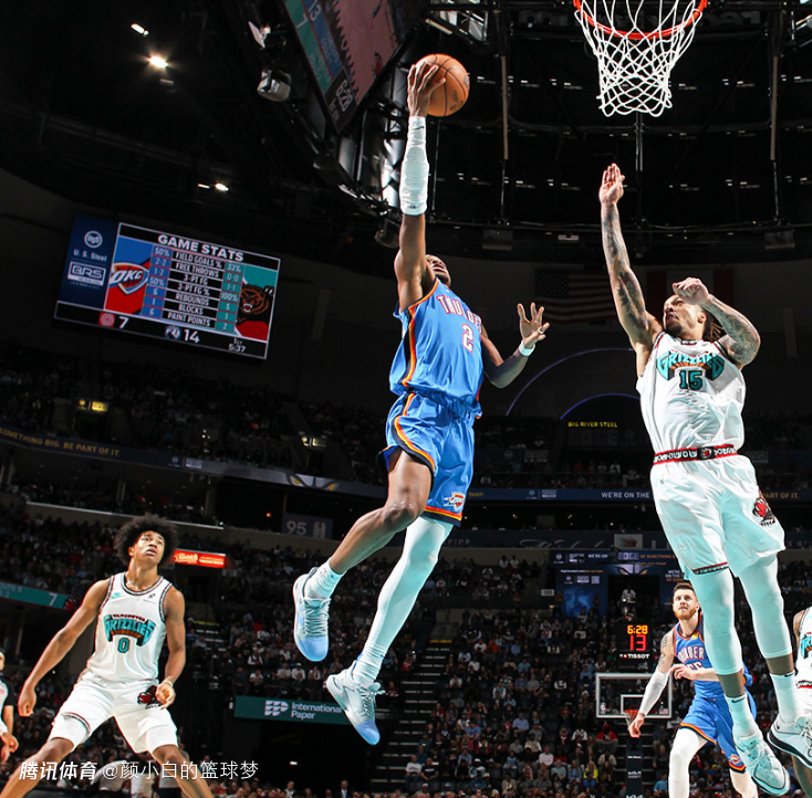 第三节SGA的手感恢复了,单节9中4+三分2中1+罚球7中5拿到14分4助攻,SGA一波流帮助雷霆建立20+的优势,三节打完SGA已经拿到31分7助攻2盖帽的数据,但他也吞下5次犯规成为隐患。威金斯已经命中7个三分球迎来生涯之夜,莫兰特三节13中2十分拉胯,灰熊攻防两端气势没有打出来。