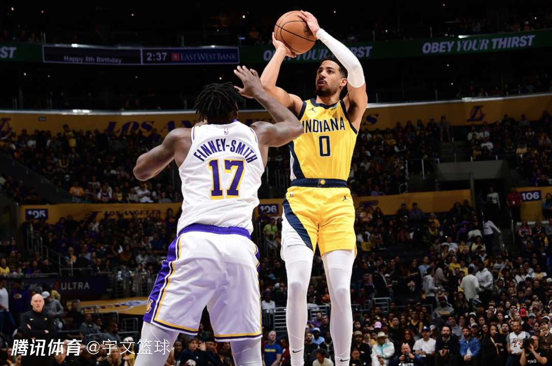 末节决战,布莱恩特和沃克连续得分,里夫斯连续命中两记三分顶住对方反扑。古德温投篮命中后,哈利伯顿三分得手。文森特和布莱恩特先后命中,古德温和里夫斯联手打出7-0扩大领先。内史密斯和哈利伯顿带队打出7-2缩小到13分。暂停后托平命中三分,里夫斯投篮得手。西亚卡姆命中投篮后,里夫斯再次得手稳住局面。随后古德温三分命中,西亚卡姆打成2+1,哈利伯顿三分命中,西亚卡姆扣篮缩小到5分。随后步行者队投篮不中,八村垒空接得手,哈利伯顿扣篮命中,里夫斯两罚全中后,湖人队险胜对手。
