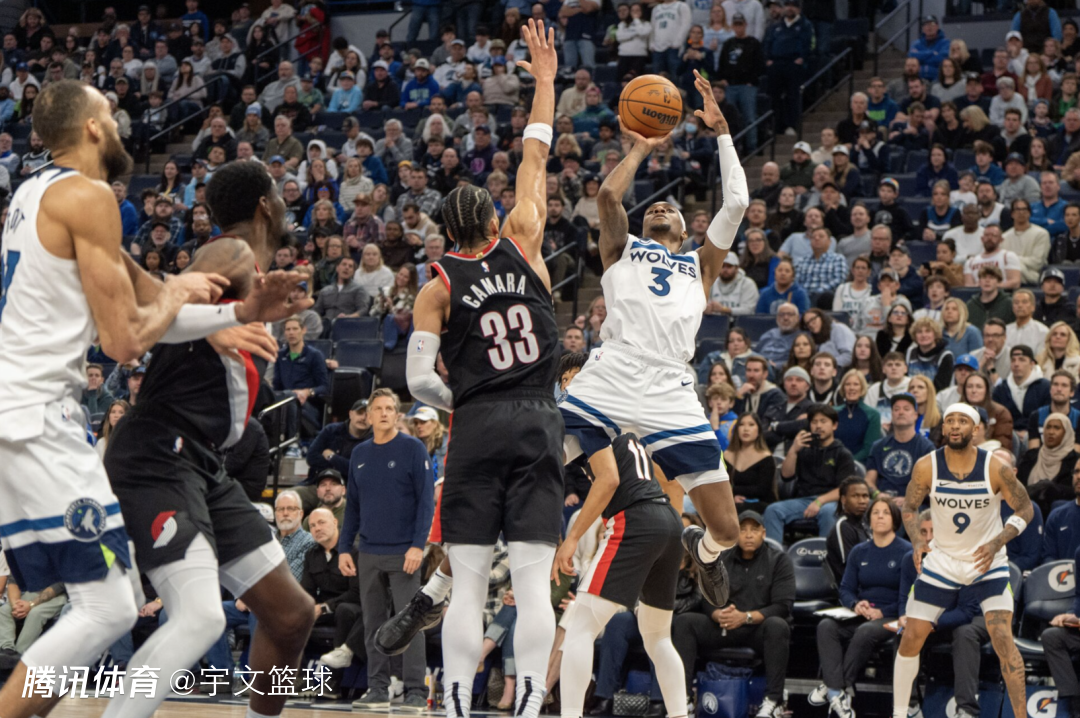爱德华兹缺席比赛,开拓者在第二节轰出单节38分,一度拉开分差到17分。森林狼小将麦克丹尼尔斯下半场爆发,个人独得18分帮助森林狼持续追分,在末节抹平分差,森林狼打出一波24-3的进攻高潮,一举拉开分差到双位数并锁定胜局。最终森林狼逆转击败开拓者取得3连胜,成功巩固西部前六的战绩,开拓者6连胜被终结。