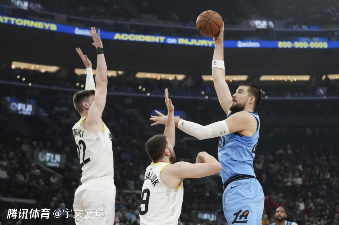 爵士5人上双,克拉克森24分,菲利波夫斯基13分8篮板5助攻,米凯卢克10分,基扬特-乔治21分4篮板4助攻,朱赞19分4篮板