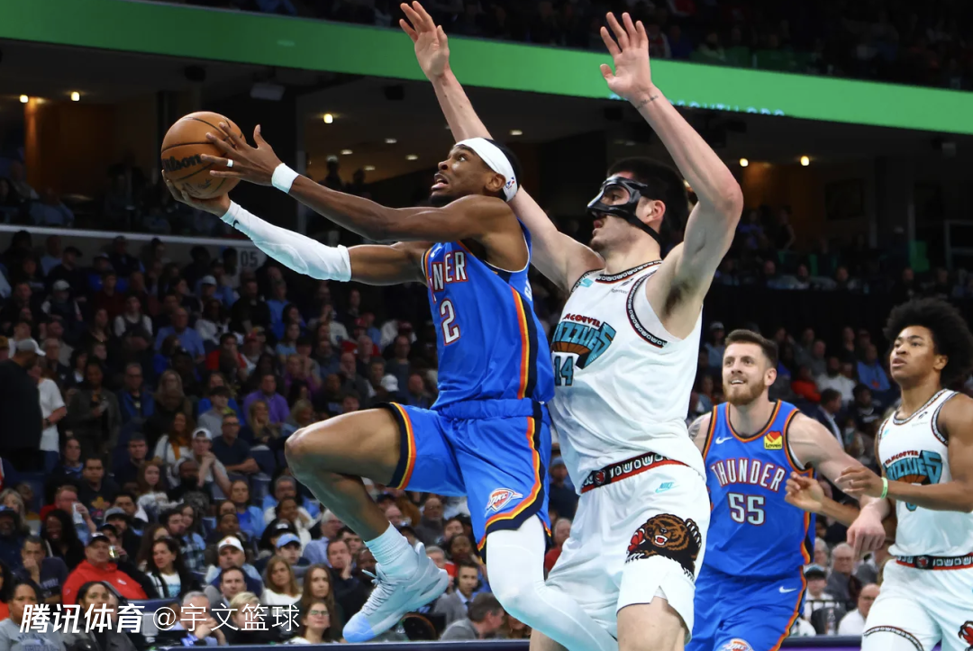 雷霆5人上双,亚历山大32分8助攻,威金斯26分11篮板,杰伦-威廉姆斯25分6篮板6助攻,卡鲁索14分,哈尔滕施泰因12分14篮板4助攻
