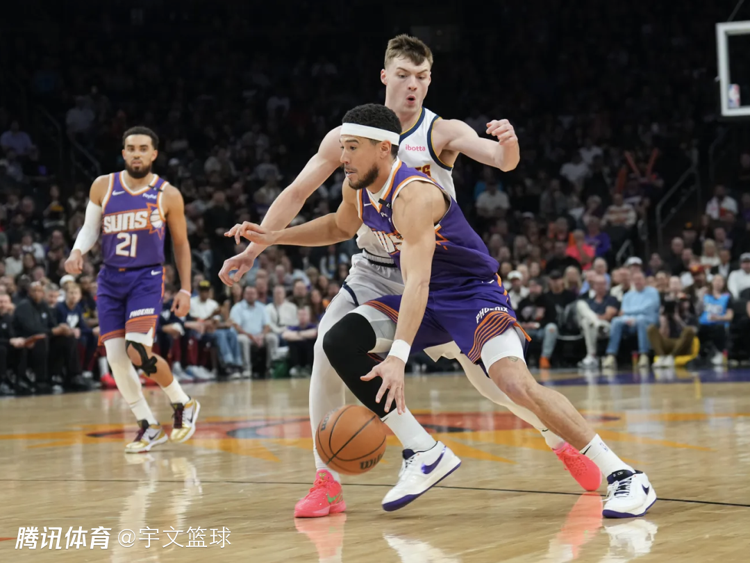 太阳包括杜兰特、比尔、阿伦等主力球员缺阵,掘金迎来穆雷回归,小波特轮休。掘金在约基奇和穆雷强势带领下,全场持续压制太阳,并在下半场最多取得23分领先优势,布克末节无力率队追分。最终掘金轻取太阳取得6连胜,约基奇三节26分+11+9打卡,太阳过去5战4负。