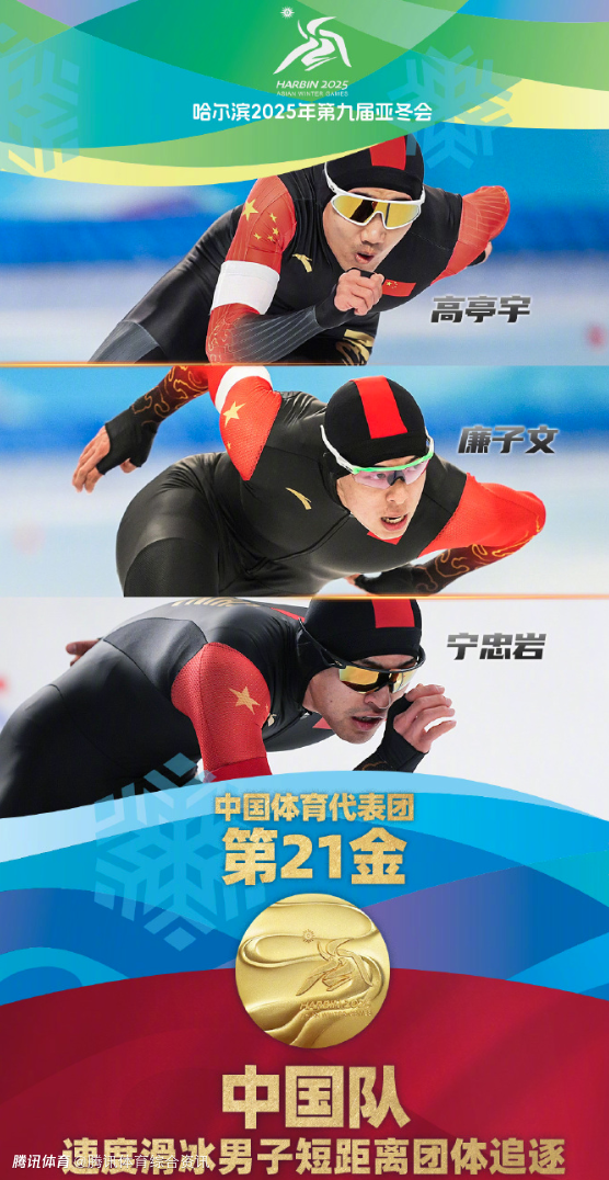 2025-02-10 14:40北京时间2月10日,哈尔滨亚冬会男子短距离团体追逐项目比赛,由高亭宇、宁忠岩、廉子文组成的中国队滑出了1分19秒22的好成绩,获得冠军,为中国代表团拿到了本届亚冬会第21枚金牌,韩国队、日本队分列第二、三位。