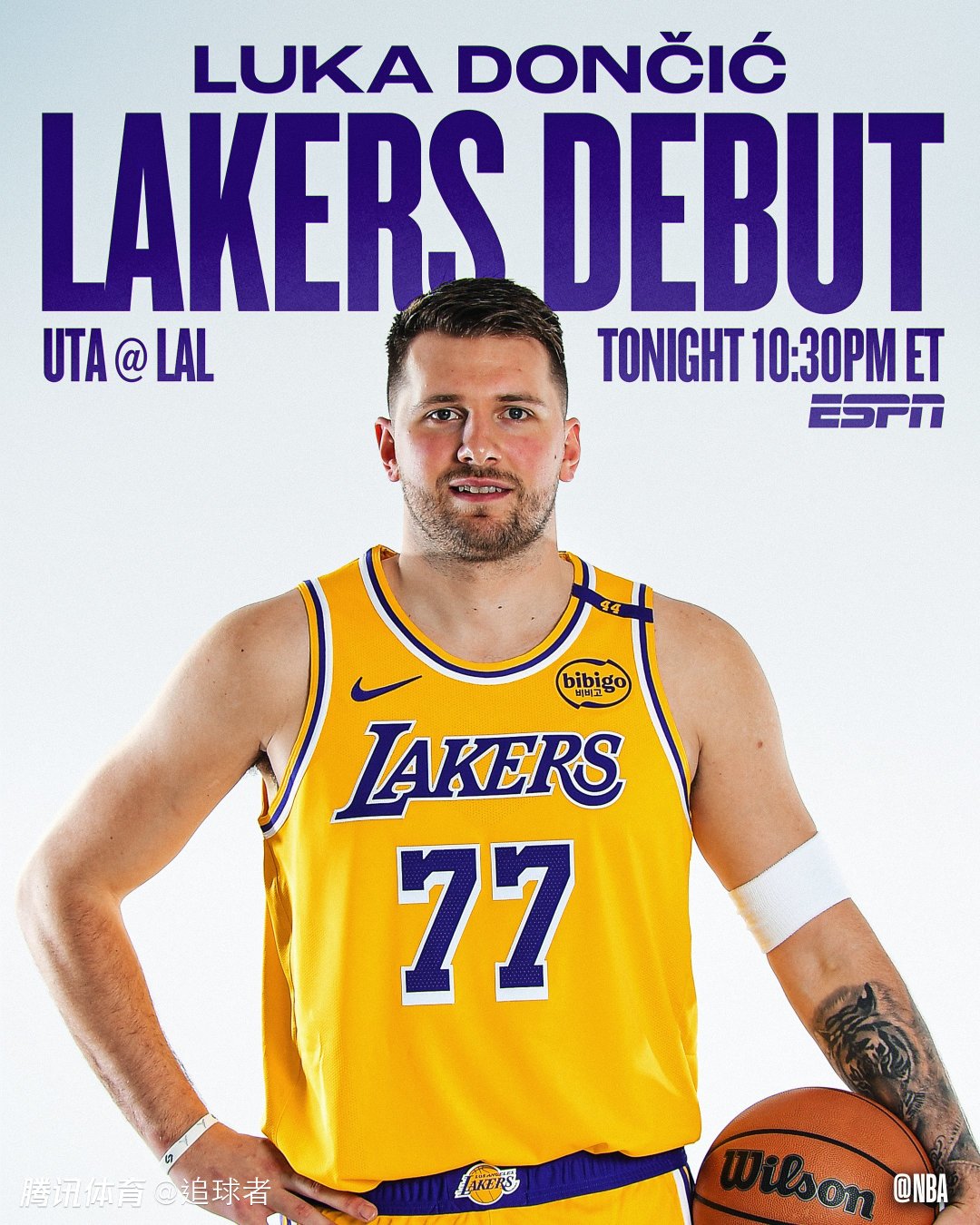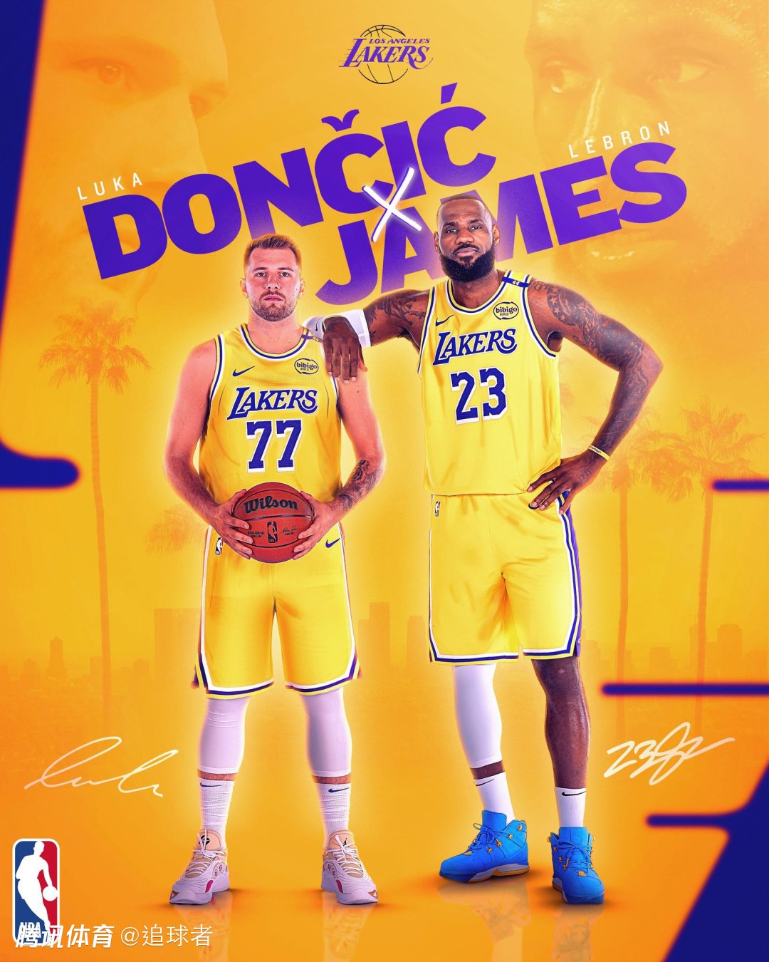 NBA官方以及众美媒纷纷晒海报为此造势,ESPN晒图写道:洛杉矶新时代;BR则是把詹韦连线的经典照改成东契奇助飞詹姆斯。