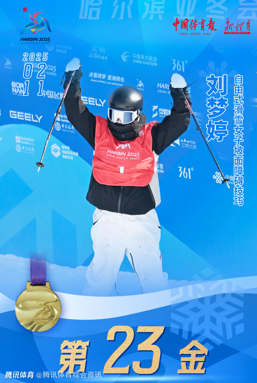 2025-02-11 13:30北京时间2月11日,哈尔滨亚冬会自由式滑雪女子坡面障碍技巧比赛,中国选手刘梦婷拿到金牌,为中国代表团拿到本届亚冬会的第23金,杨如意和韩林杉拿到银、铜牌,中国队包揽奖牌。