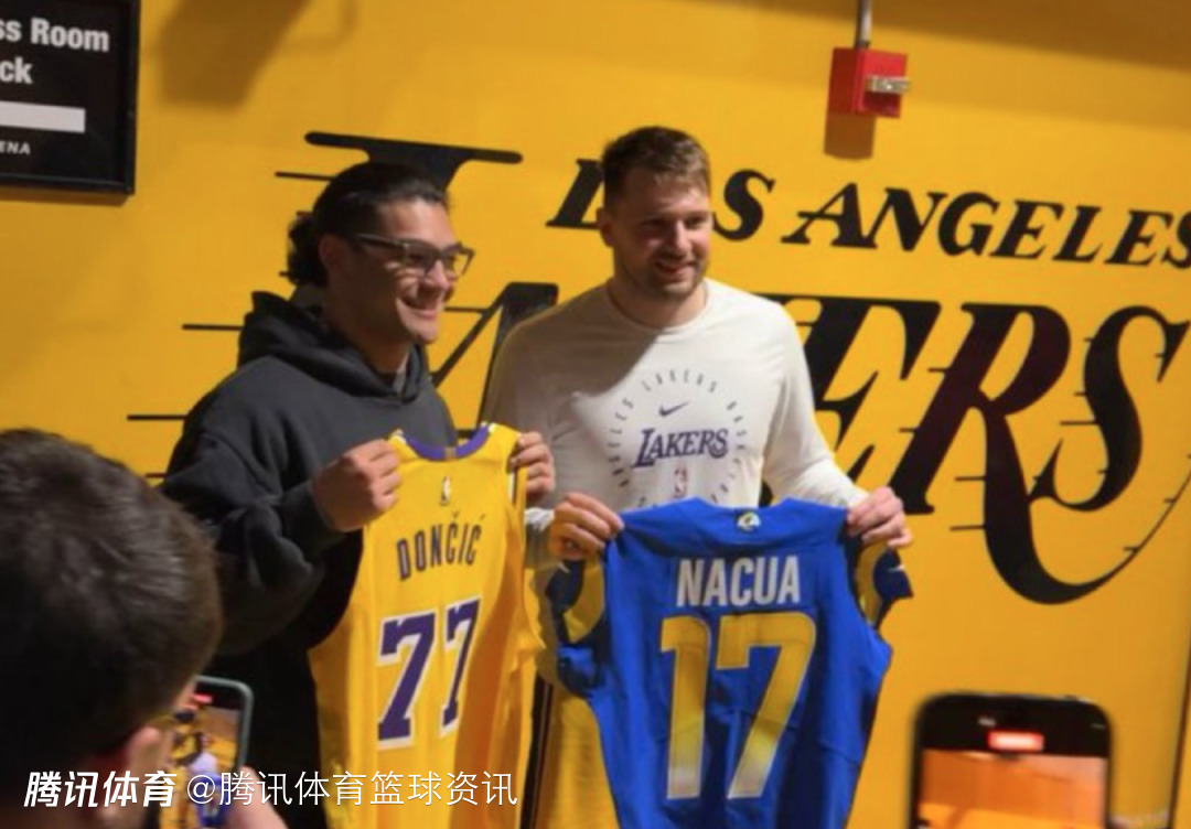 赛后东契奇和NFL洛杉矶公羊队外接手普卡-纳库交换了球衣,并且合影留念。现年23岁的纳库,拥有萨摩亚、夏威夷和葡萄牙血统,在2023年NFL选秀大会以第五轮总第177顺位被选中,值得一提的是,公羊角卫肯德里奇曾把纳库比作NFL的东契奇,将其称为“普卡-东契奇”。