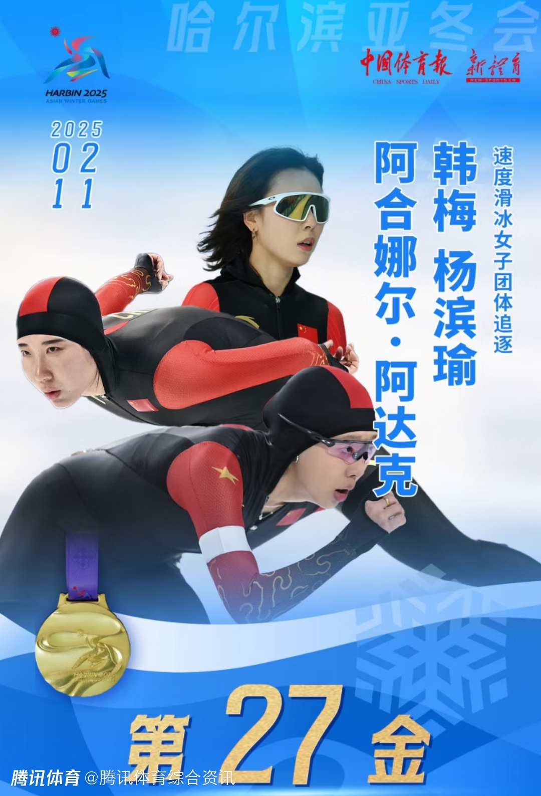 亚冬会27金!中国速滑队收获女子团体追逐赛冠军 以11金收官