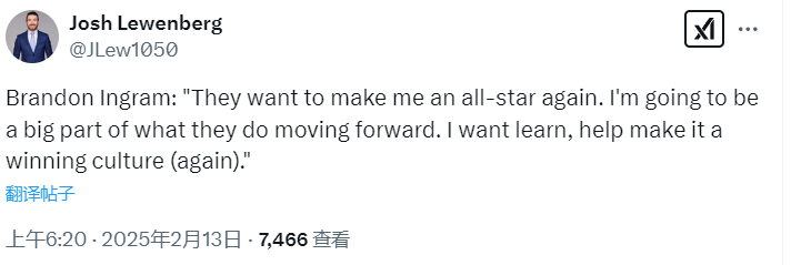 英格拉姆:猛龙想让我再次成为全明星球员 愿帮助球队重建赢球文化