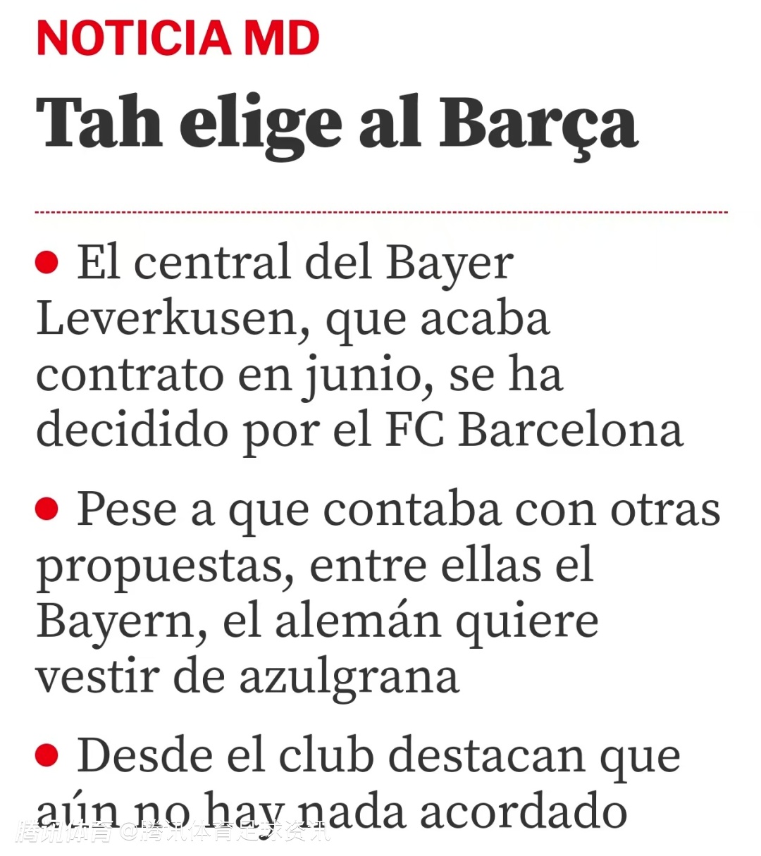 早在12月11日,巴萨前往多特蒙德时,俱乐部就与塔的经纪人进行了初步接触,探讨了加盟的可能性。出于对勒沃库森的尊重以及国际足联的相关规定(1月1日之前不能进行正式的自由谈判),塔选择等待巴萨的正式报价后再做决定。