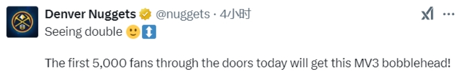 掘金官方:今日前5000名入场球迷可获约基奇摇头娃娃