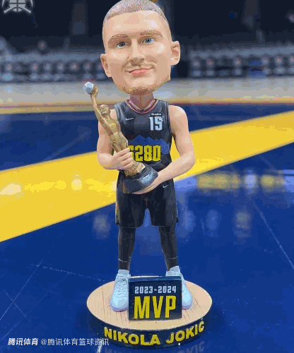 掘金队官方还晒出了一张约基奇手持摇头娃娃玩偶的照片,而从照片中可以看到,这款摇头娃娃是为了纪念约基奇在2023-24赛季荣膺NBA常规赛MVP,这也是约基奇职业生涯第3次拿到常规赛MVP。