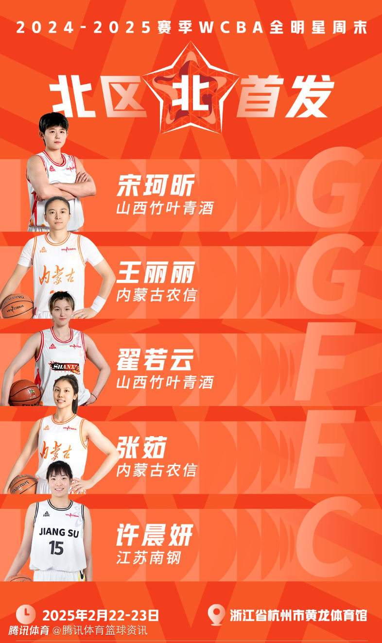 2024-2025WCBA全明星正赛首发球员名单如下: