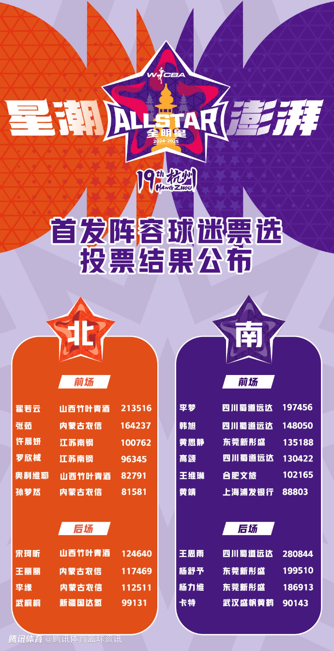 2024-2025赛季WCBA全明星正赛首发阵容球迷票选最终结果出炉: