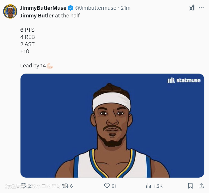 全场比赛,巴特勒35分钟,15中6,三分4中1,罚球6中6,拿到19分8篮板4助攻0失误,命中率40%,他加盟勇士四场比赛场均至少罚6个球,他的制造杀伤能力实际上已经是勇士第一档的存在。