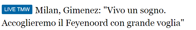 希门尼斯:“进球总是能给前锋带来信心,但更重要的是胜利。周二,米兰知道如何去踢这样的比赛,我们将以极大的热情迎接对手。”