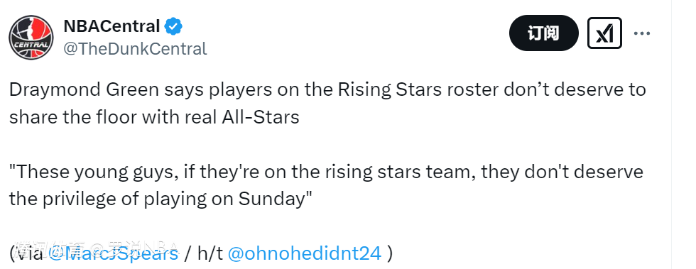 2025-02-17 06:30北京时间2月17日,据名记Spears报道,勇士前锋格林支持全明星的锦标赛新赛制,但他对赛制的执行方式有异议。格林表示:“这些年轻人,如果他们加入的是明日之星队,他们就不配在全明星正赛上场。”