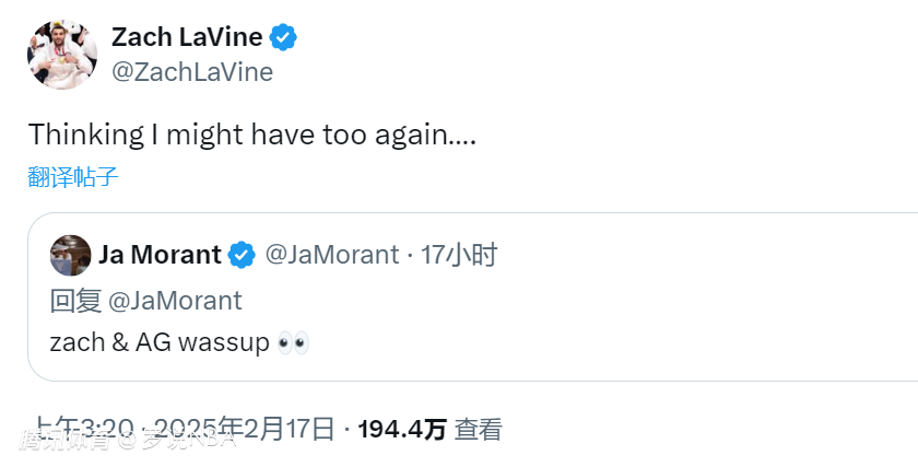 2025-02-17 06:30北京时间2月17日,麦克朗实现扣篮大赛三连冠后,灰熊球星莫兰特曾表示自己可能也想参赛,并喊话拉文和戈登来参加。国王新援扎克-拉文更新社媒,转发了莫兰特的社媒,并写道:“我想我可能也会去。”