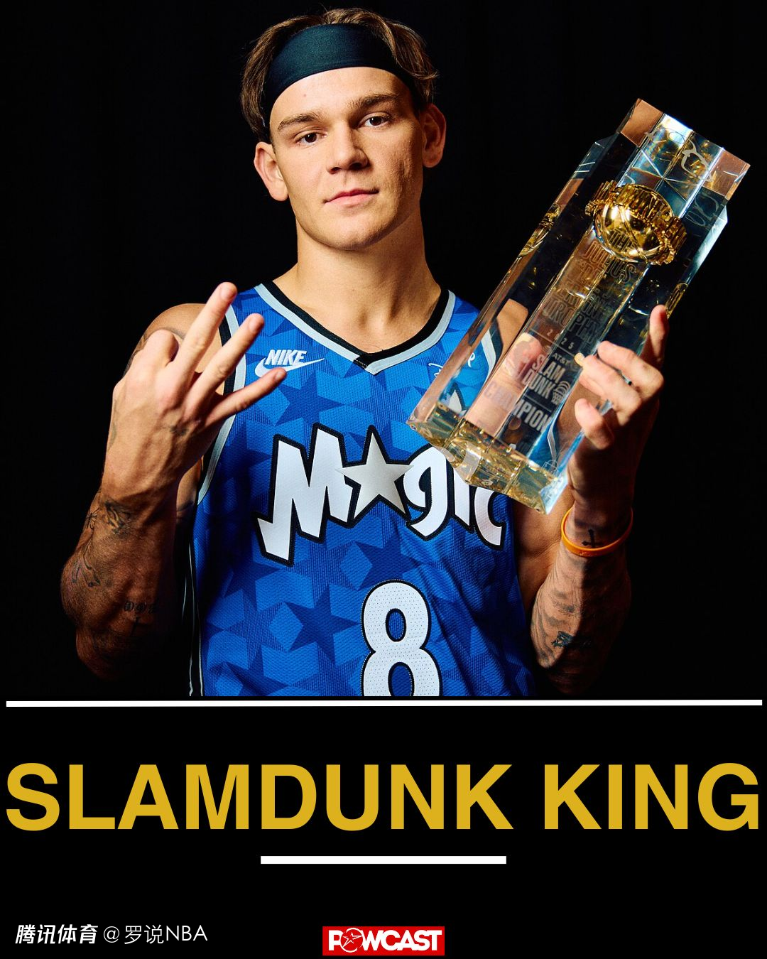 拉文从罚球线起跳完成了一记胯下扣篮,锁定了他的连续第二个扣篮大赛冠军。