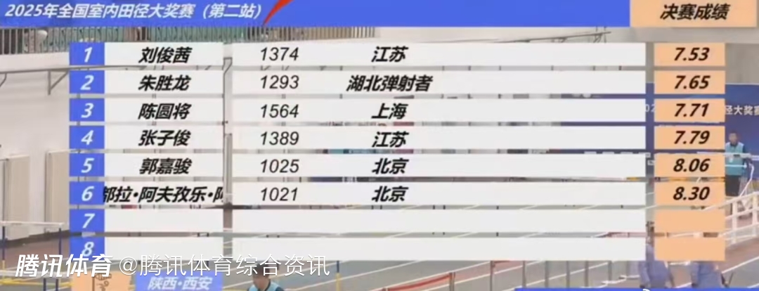 60米栏7秒53!刘俊茜夺得全国田径室内大奖赛冠军 成绩仅次于刘翔