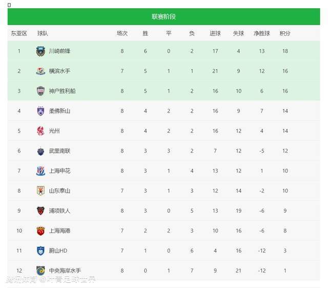 12支球队参加亚冠精英联赛东亚区赛事,18分的川崎前锋、16分的横滨水手、16分的神户胜利船、14分的柔佛新山、14分的光州FC、12分的武里南联,均已经锁定东亚区8强席位。