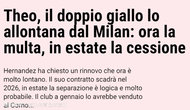 如今,米兰与特奥的故事似乎已经接近尾声,尤其是考虑到今夏将是米兰出售他的最后机会。俱乐部已经开始寻找这位法国后卫的潜在替代者。
