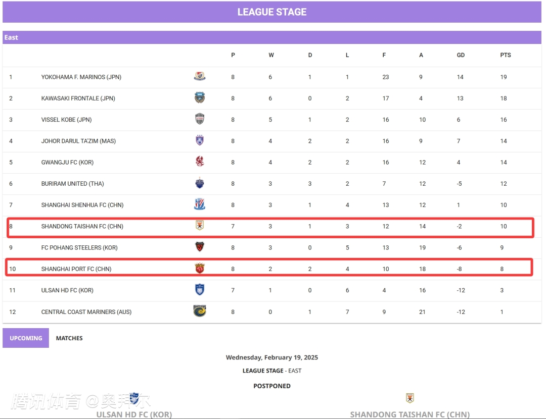 2025-02-20 00:10周三,在结束了东亚区第8轮的比赛之后,亚足联在社交媒体宣布上海申花、上海海港晋级淘汰赛。然而,亚足联的这一决定却引发了韩国网友的不满。
