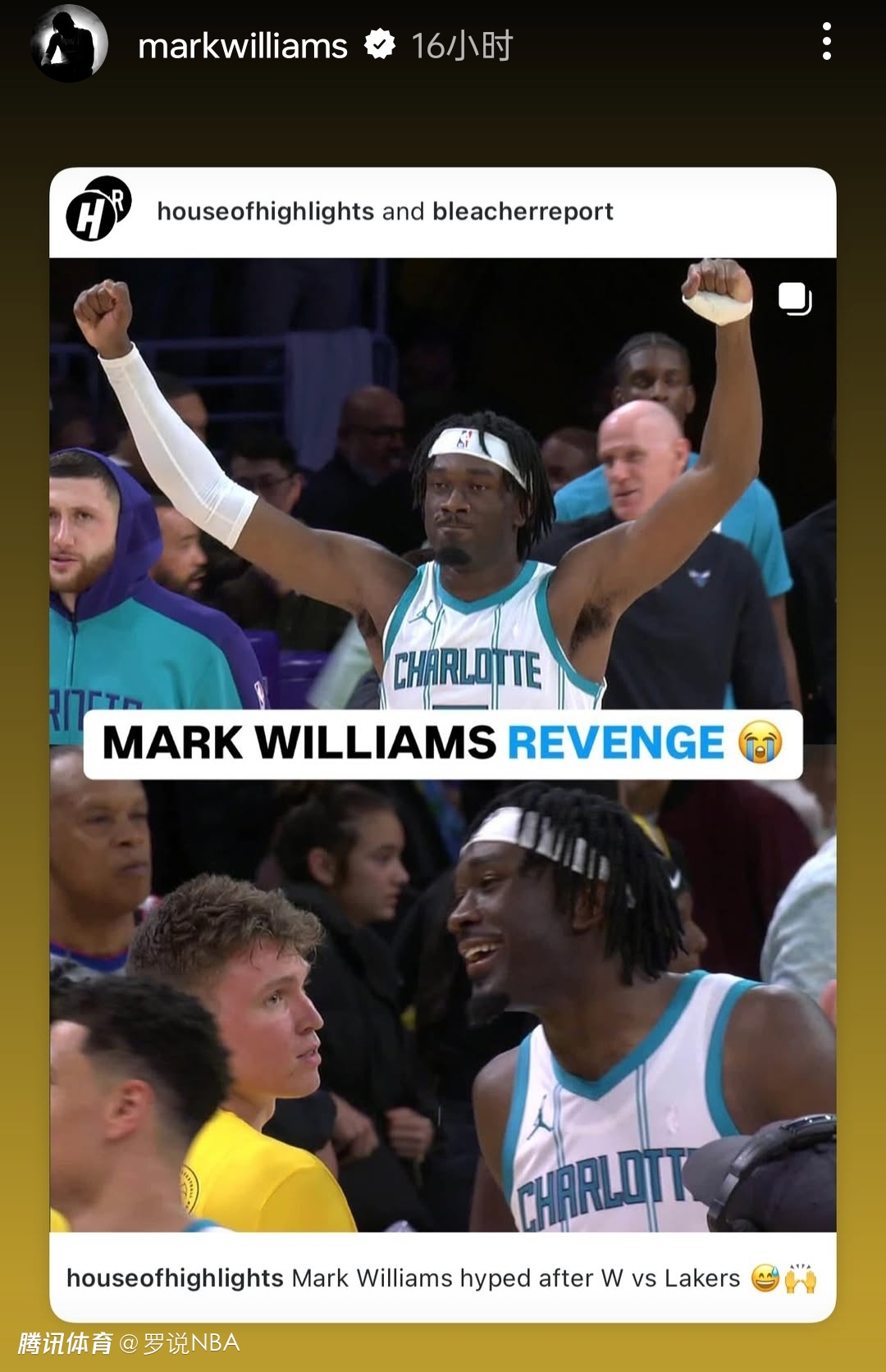 2025-02-21 06:20北京时间2月21日,据名记Shams报道,马克-威廉姆斯的经纪人杰夫-施瓦茨发表声明,表示湖人不该认定马威的体检不合格。马克-威廉姆斯本人晒出带有“复仇之战”字样的照片,并转发了经纪人的声明。