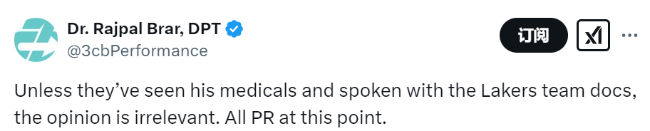 施瓦茨的这次声明,让马威事件再次引起热议。名医Rajpal Brar表示,除非这些知名医生看过他的体检报告,并和湖人的队医进行过交流,否则这些意见无关紧要。目前全是在公关。