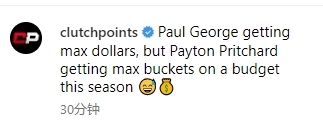 该媒体还配文写道:“保罗-乔治拿到了顶薪,但佩顿-普里查德本赛季却在同级别薪水的球员里命中了最多的投篮。”