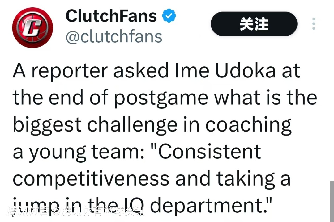 执教年轻球队最大挑战?乌度卡:保持持续竞争力 在篮球智商上实现飞跃