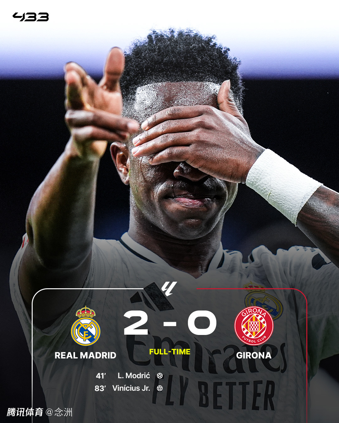 西甲第25轮,皇马主场2-0击败赫罗纳,近4轮首胜,积分追平榜首。莫德里奇世界波破门,姆巴佩助攻维尼修斯锁定胜局。