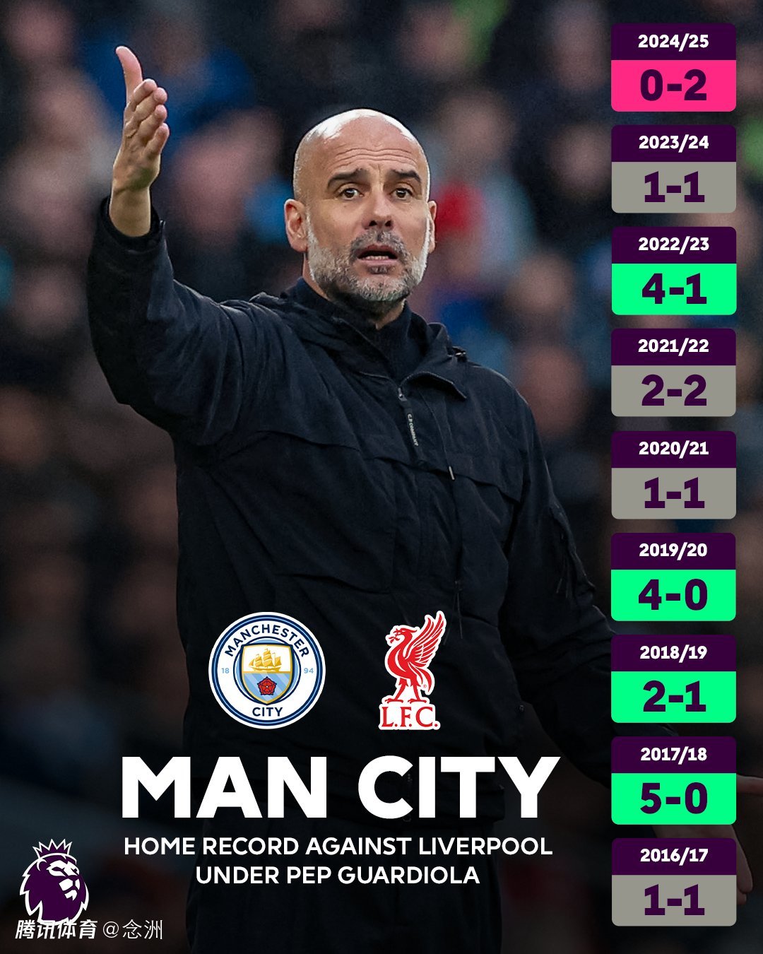 瓜迪奥拉10负头号克星!曼城1战刷爆6大耻辱 詹俊:恐保不住前四