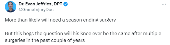 对于恩比德的情况,医学专家Evan Jeffries表示,恩比德很可能接受赛季报销的手术, 但这引出了一个问题,在过去几年多次手术后,他的膝盖还能恢复到以前的样子吗?