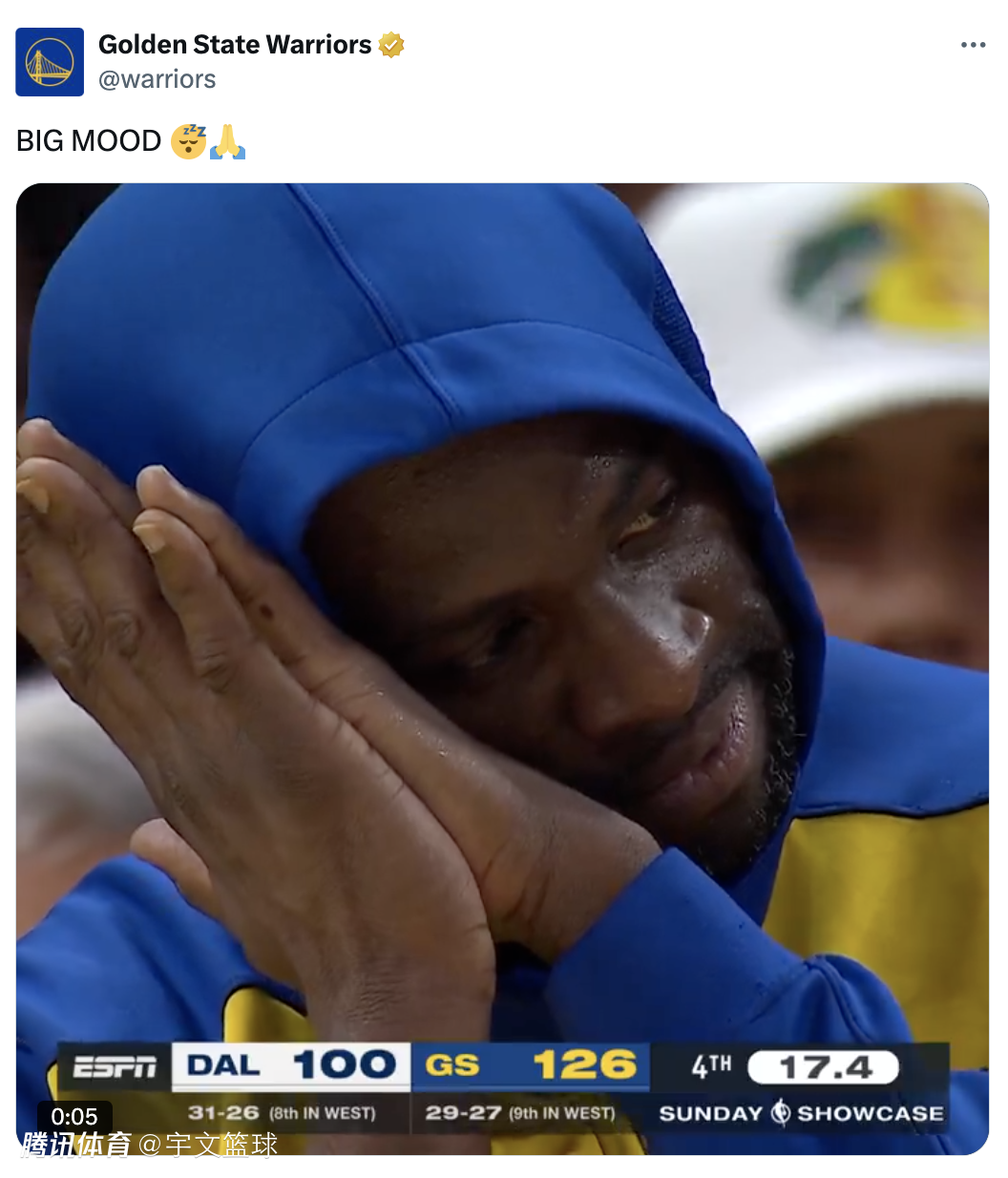 库里的“晚安”手势已经传染全队,追梦格林在勇士大势已定时作出“晚安”手势送别独行侠,库里要不考虑注册一个品牌商标吧!
