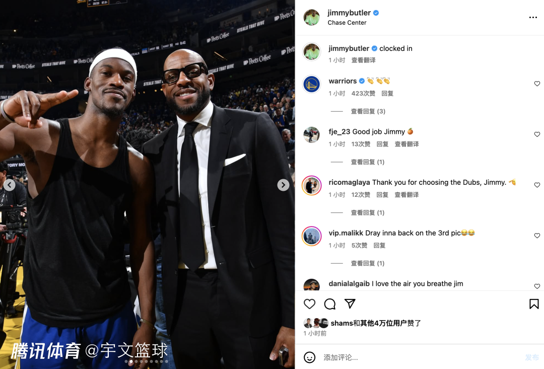 巴特勒看起来心情也非常激动,他在社交媒体发布多张图片,向勇士主场表示敬意