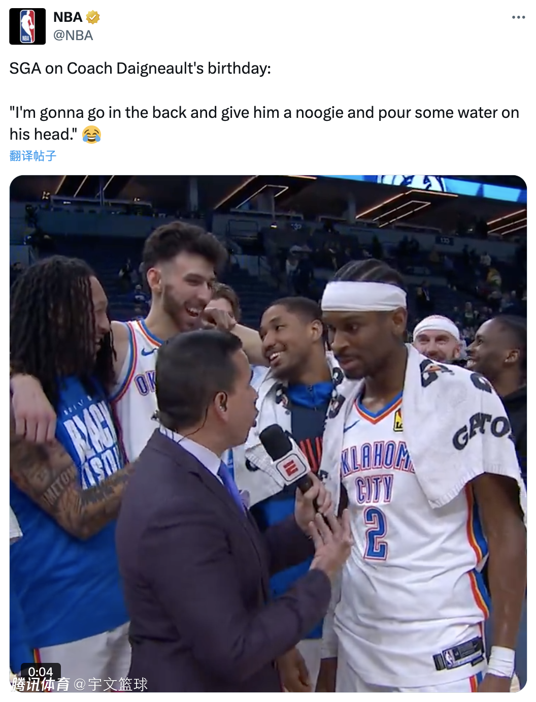 当赛后采访问到亚历山大,如何为主教练戴格诺特庆祝生日时,亚历山大表示会在更衣室里暴揍他一顿,然后在他头上浇点水,这是不是像极了你和你的哥们日常嬉笑打闹?
