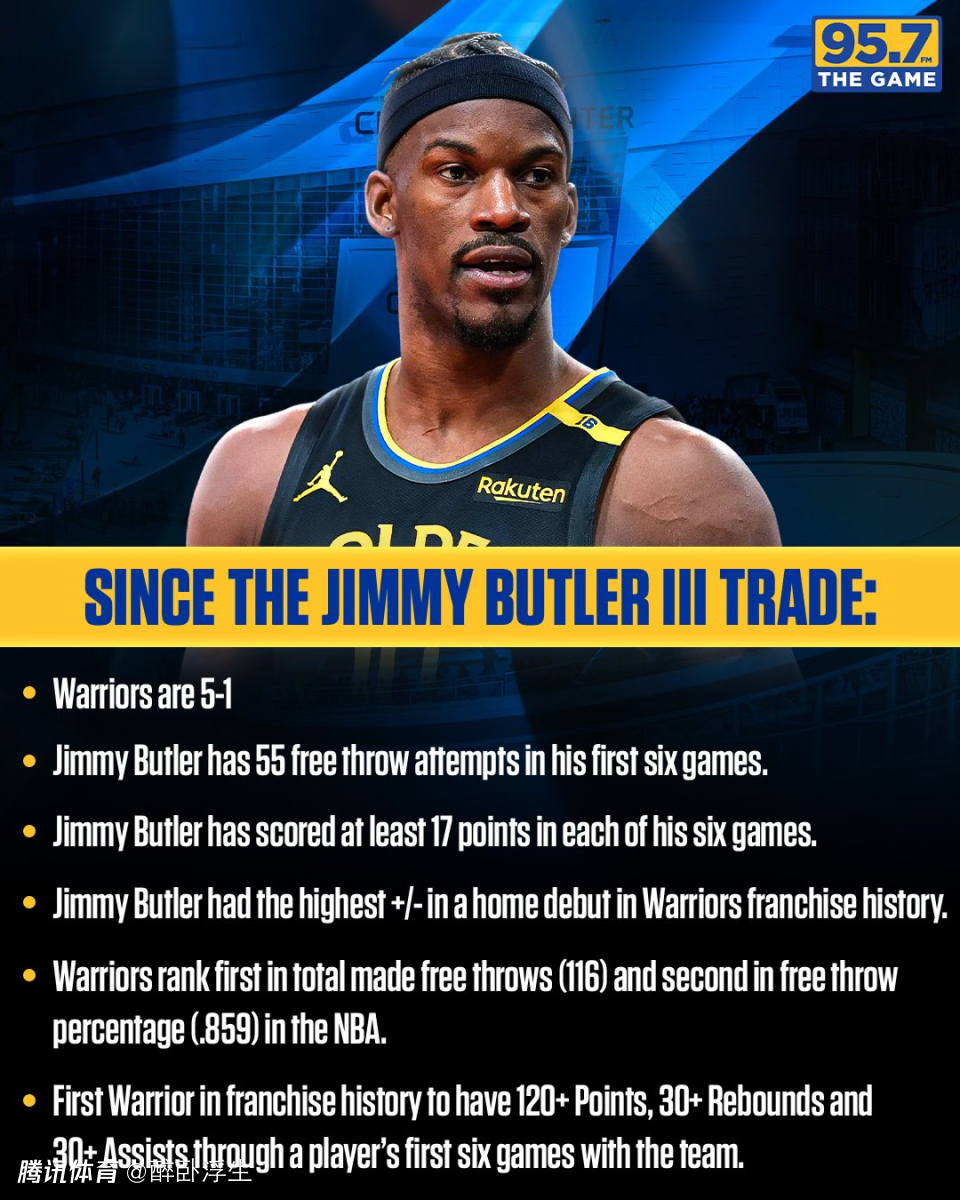 2、巴特勒成为金州勇士历史首位在加盟前六场比赛,贡献至少120分、30篮板和30助攻的球员。
