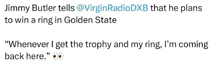 巴特勒的言论无疑存在内涵老东家热火的嫌疑,但至少目前来看勇士得到巴特勒后,他们正处在正确的前进道路。巴特勒还在此前的节目中表示,他计划在勇士夺得一枚总冠军戒指。