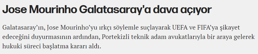 加拉塔萨雷俱乐部对穆里尼奥在德比战后的言论进行了强烈谴责,并表示将对这位葡萄牙籍教练提起诉讼。他们认为穆里尼奥的言论带有“种族主义”色彩,并计划向国际足联(FIFA)和欧足联(UEFA)提出申诉。
