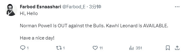 快船vs公牛伤病报告:莱昂纳德可出战 鲍威尔因伤缺阵