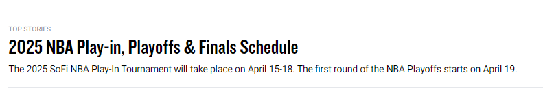 2025-02-26 09:50北京时间2月26日,NBA官方公布了2024-25赛季的附加赛、季后赛和总决赛的相关赛程。附加赛将从4月16日(北京时间,下同)开打,季后赛从4月20日开始,而总决赛首战被安排在6月6日。以下是相关重要日期——