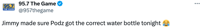 上场与独行侠的比赛中,波杰姆斯基在暂停时,一屁股坐到巴特勒身边,喝到了一瓶神秘液体,神情显得非常痛苦。但今天这场比赛,巴特勒亲自将水递给波杰姆斯基,他在回到板凳席上喝水时,明显感觉正常许多。由此可见,今天这瓶水应该就是波杰姆斯基自己的,而上场与独行侠的比赛,他应该是误喝到了巴特勒或者是其他队友的水。