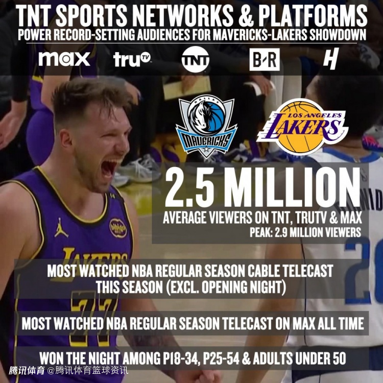 赛后,据相关统计显示,本场比赛在TNT体育网络及平台的转播创下了多项收视纪录:
