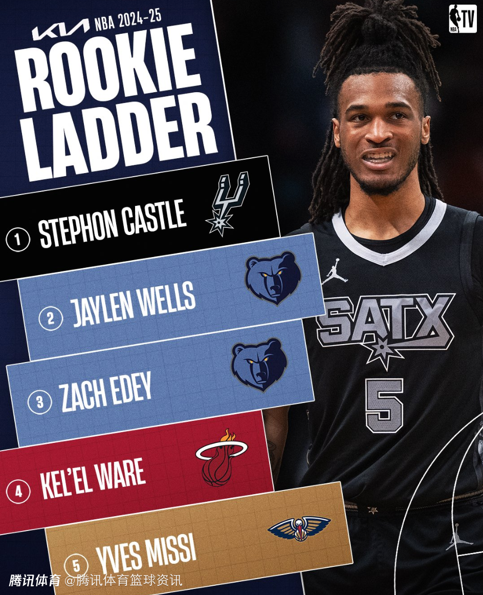 2025-02-27 10:20北京时间2月27日,NBA官方公布了最新一期新秀榜,马刺4号秀卡斯尔继续领跑,灰熊次轮秀韦尔斯位列第二,老鹰状元郎里萨谢居第六。