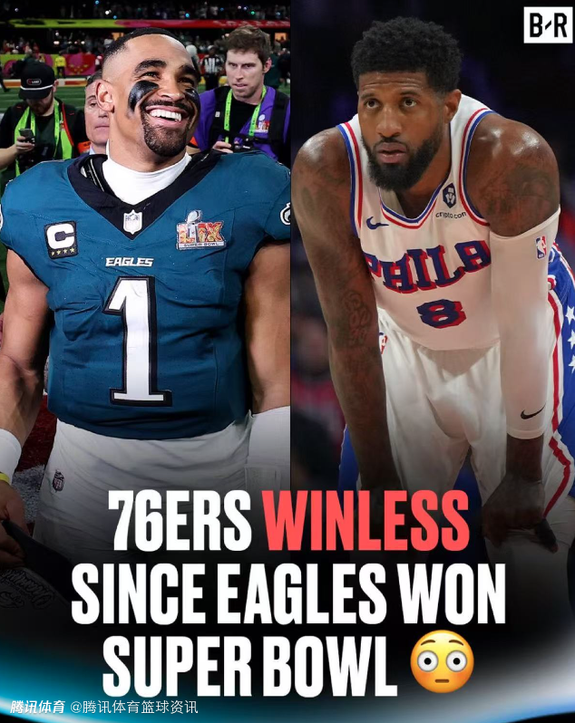 今天赛后,美媒BR发推调侃,称费城体育最近经历了高潮和低谷,自费城老鹰在2月10日拿到NFL超级碗冠军后,76人还未尝胜绩。