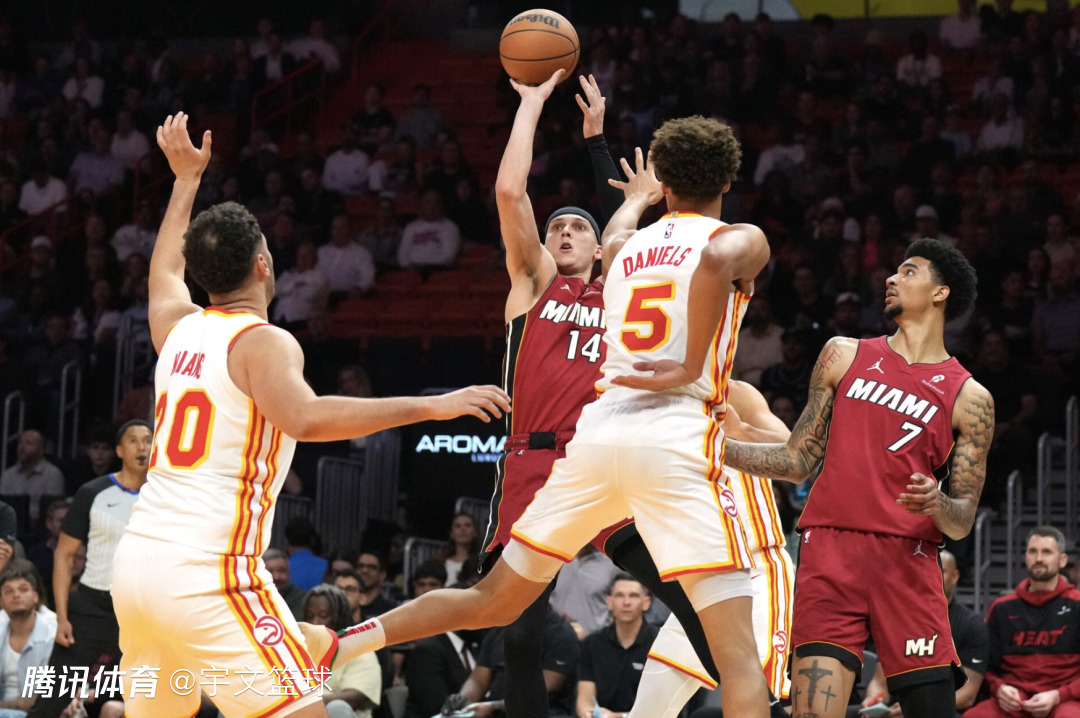 老鹰6人上双,丹尼尔斯18分5篮板5助攻,特雷-杨17分8助攻,奥孔古13分9篮板,里萨谢11分,勒维尔17分,曼恩13分4篮板4助攻