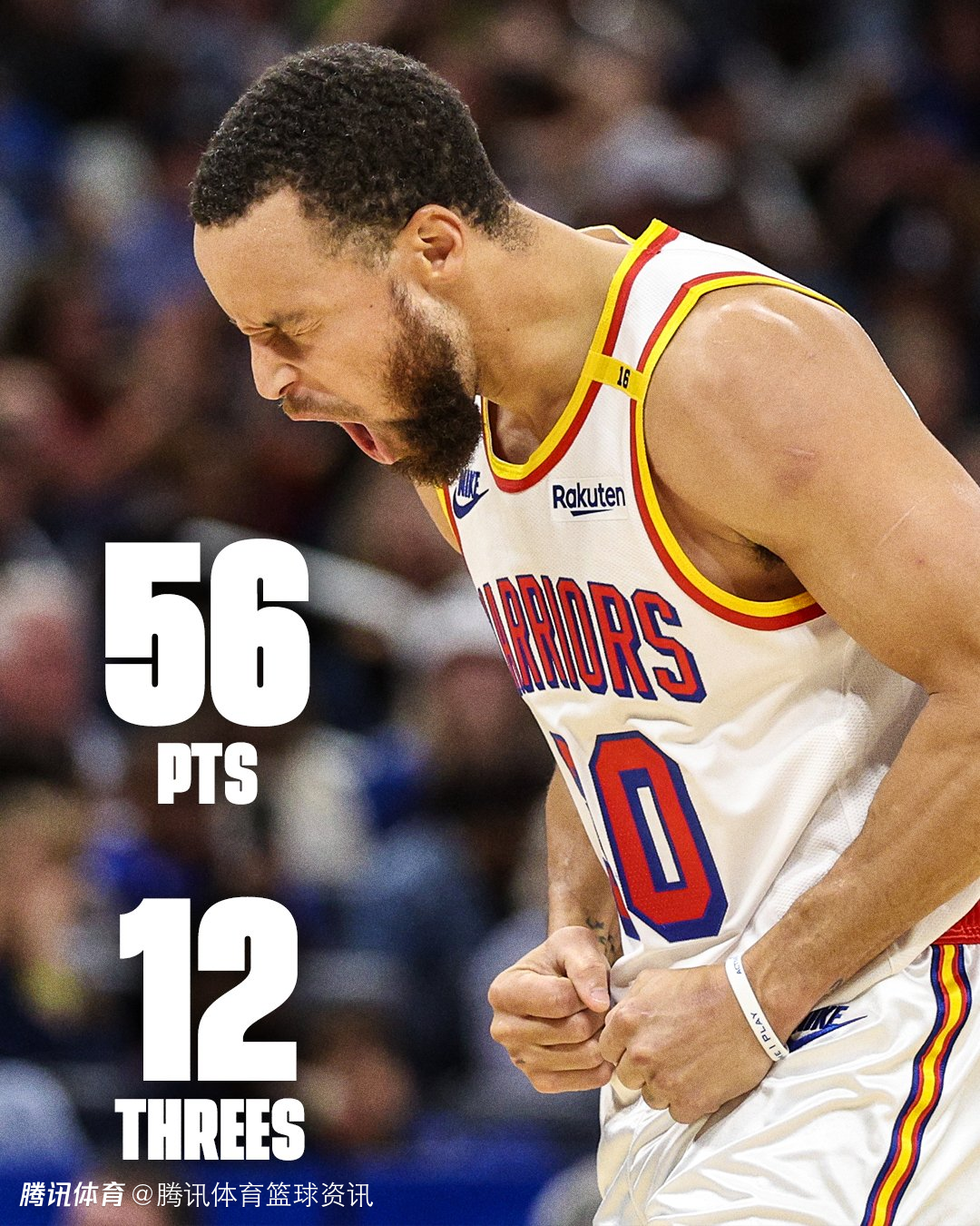 2025-02-28 11:30北京时间2月28日,NBA常规赛继续进行,勇士121-115战胜魔术。本场比赛中,勇士球星库里出战34分钟,全场25中16,三分19中12得到56分4板3助攻2抢断。