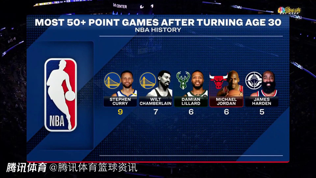 根据数据统计,库里30岁后50+得分场次达到9次,排名历史第一,张伯伦7次位居第二,利拉德和乔丹均达成6次,哈登则5次完成该壮举。另外,算上这场50+,库里和詹姆斯生涯50+的场数目前同为14场。